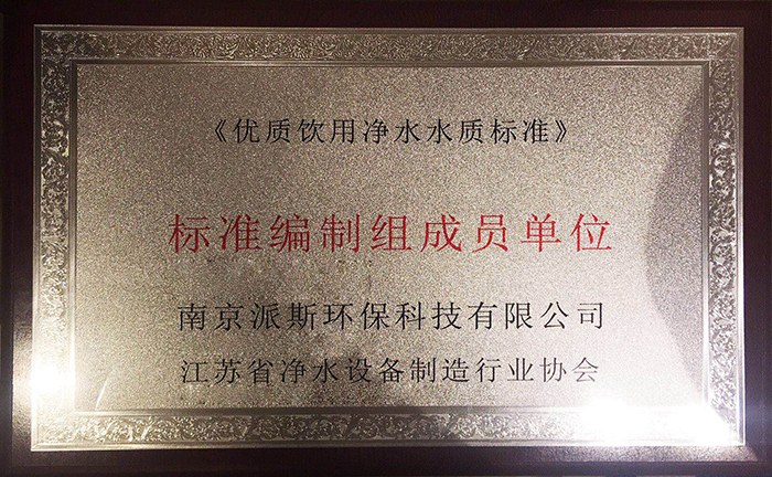 2017年12月21日,派斯環保作為江蘇省《優質飲用凈水水質標準》編制組成員單位,參與標準的制定研討會,編制組詳盡查閱了2012年美國、2015年日本等發達國家的飲用水水質標準,并結合國內實際情況,把先進技術要求和理念,引入本標準,盡可能與發達國家美國,日本,歐盟同類標準接軌。
