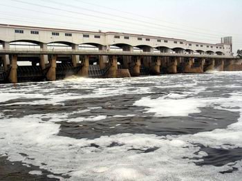 淮河支流安徽潁上潁河閘水流量巨大,激起無(wú)數(shù)白色泡沫。據(jù)專家介紹,由于從閘壩下泄水的水質(zhì)超標(biāo),才會(huì)產(chǎn)生如此多的泡沫