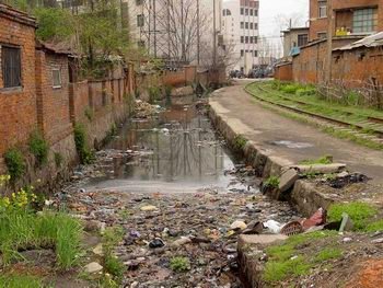 1.這是河南省信陽(yáng)市一條穿越居民小區(qū)充斥著各式生活垃圾的河道。該河道通往淮河支流?河