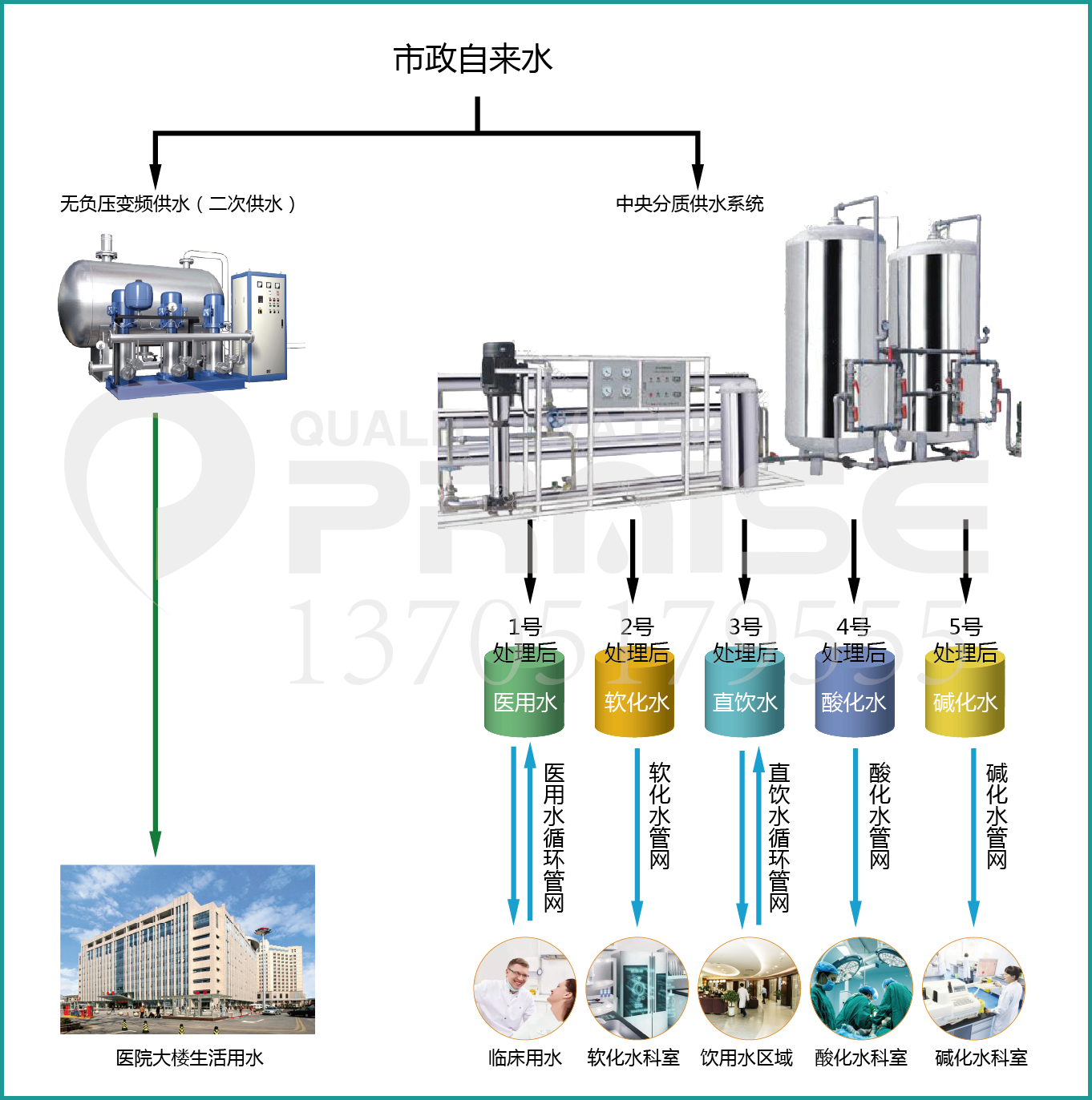 通過(guò)中央凈化、分質(zhì)供水系統(tǒng)、解決全醫(yī)院所有用水